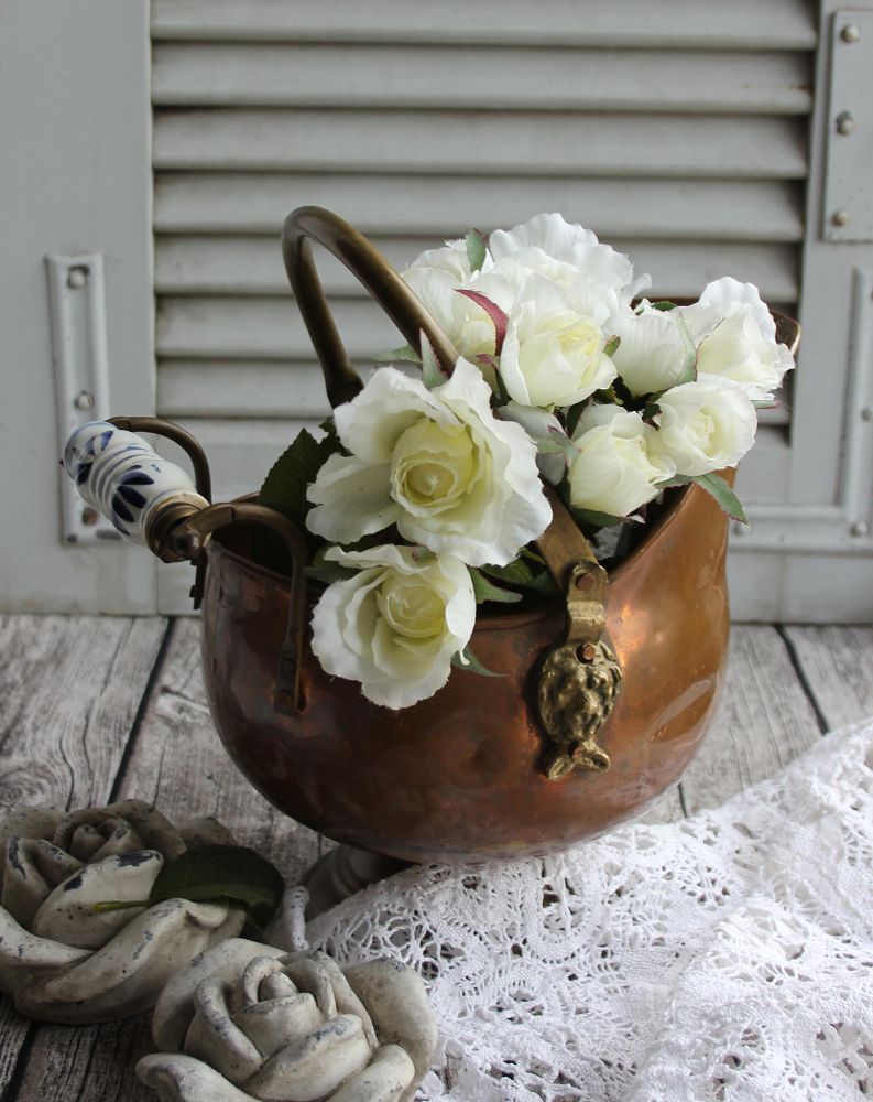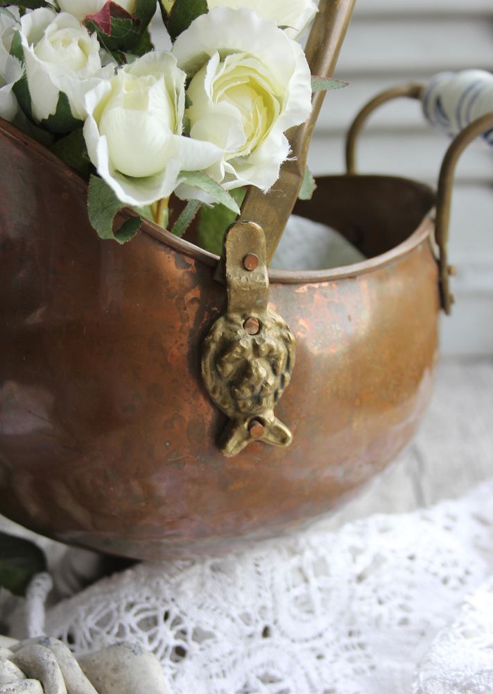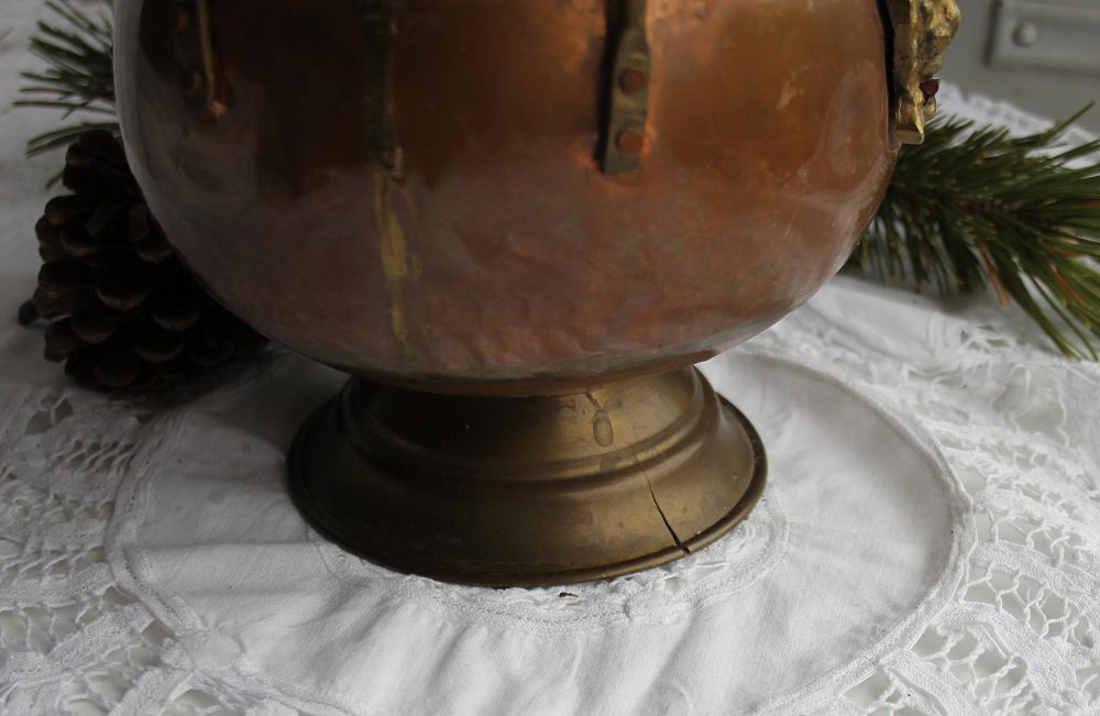 Das alte Kupfergefäß ist ein zauberhaftes Wohnaccessoire für drinnen und draußen. Ein herrliches Dekoobjekt oder zur Aufbewahrung verschiedener Kleinigkeiten geeignet – oder einfach als Übertopf für eine schöne Pflanze…