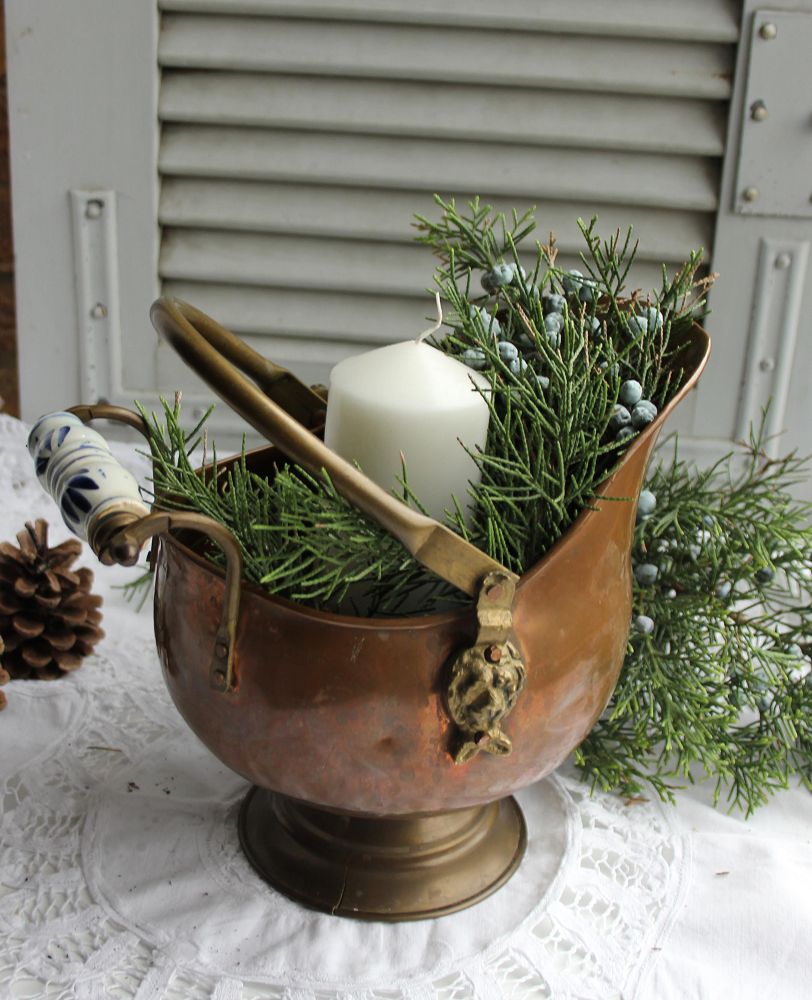 Die alte Kupferjardiniere hat über die Jahrzehnte eine wunderschöne, altersgemäße Patina angesetzt.
