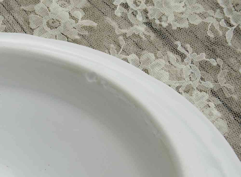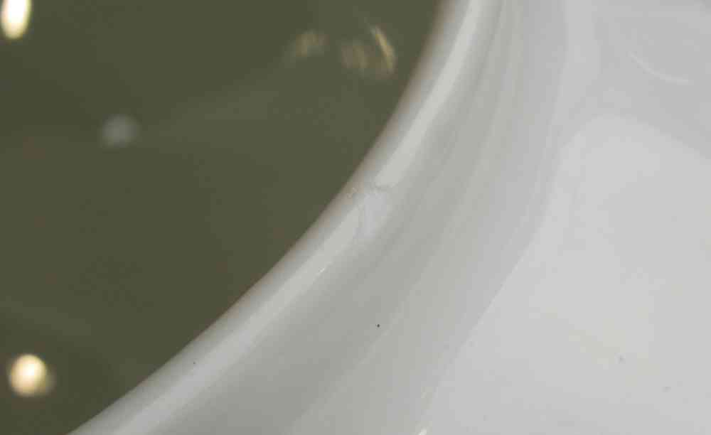Lediglich auf der Innenseite des Deckels und am oberen Rand der Terrine befindet sich je ein kleiner Abplatzer (s. Foto).