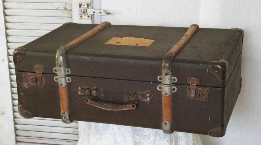 Wo dieser alte antiker Überseekoffer Reisekoffer Vulkanfiber wohl schon über all gewesen ist? Wieviel Länder er schon bereist hat? In wievielen Zügen er schon unterwegs war, auf Bahnhöfen gewartet hat… Hören Sie genau hin – er hat viel zu erzählen… 😉