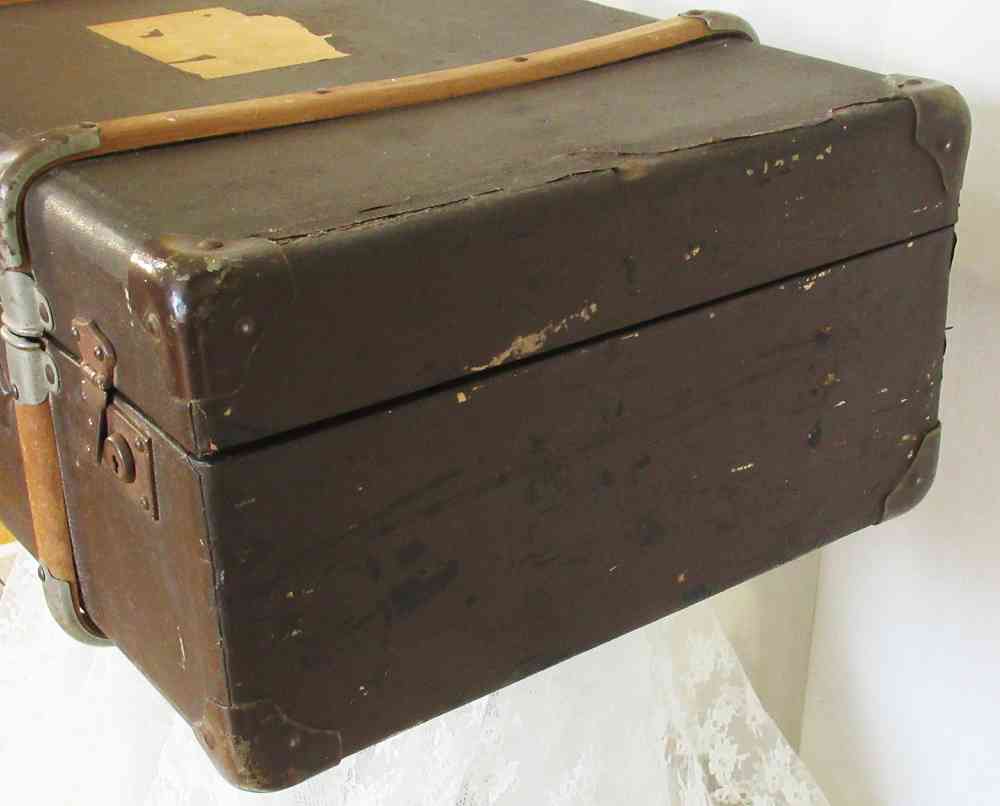 Hier biete ich einen antiken Reisekoffer / Überseekoffer aus echtem Vulkanfiber an. Dieses ist ein seit ca. 1855 bekannter Bioverbundwerktstoff auf der Basis von Zellstoff. Dieser Koffer stammt ca. aus der Zeit um 1910/1920.