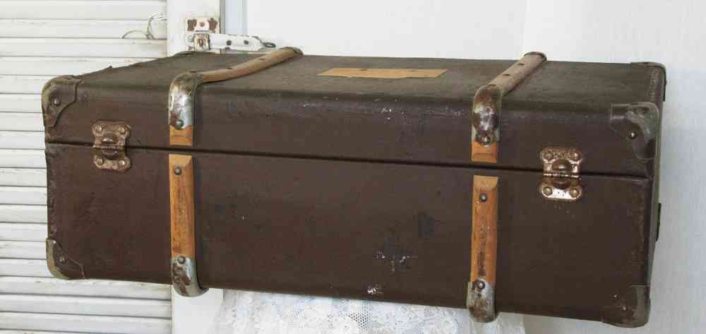 Auch wenn er als Koffer vielleicht bereits ausgedient hat, so ist der antike Koffer doch ein wunderbares Dekostück mit dem Charme längst vergangener Zeiten. Auch kann dieser antiker Überseekoffer Reisekoffer Vulkanfiber zur Aufbewahrung verschiedener Kleinigkeiten, ja selbst Bettwäsche oder Decken dienen.