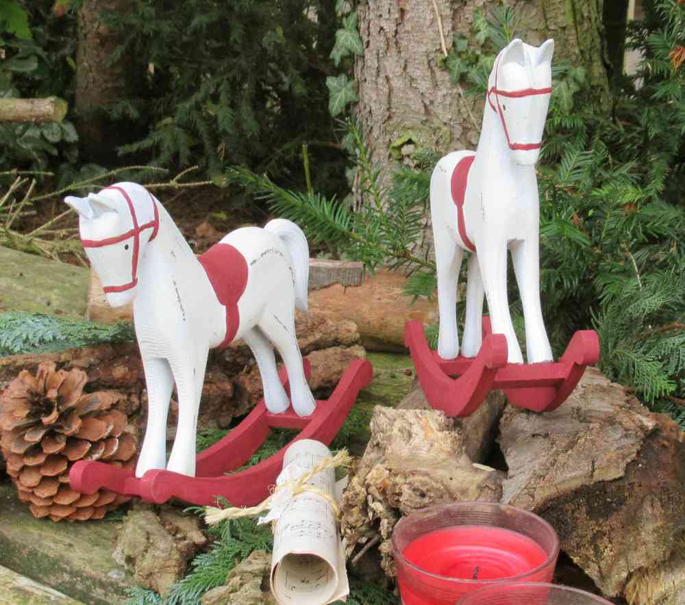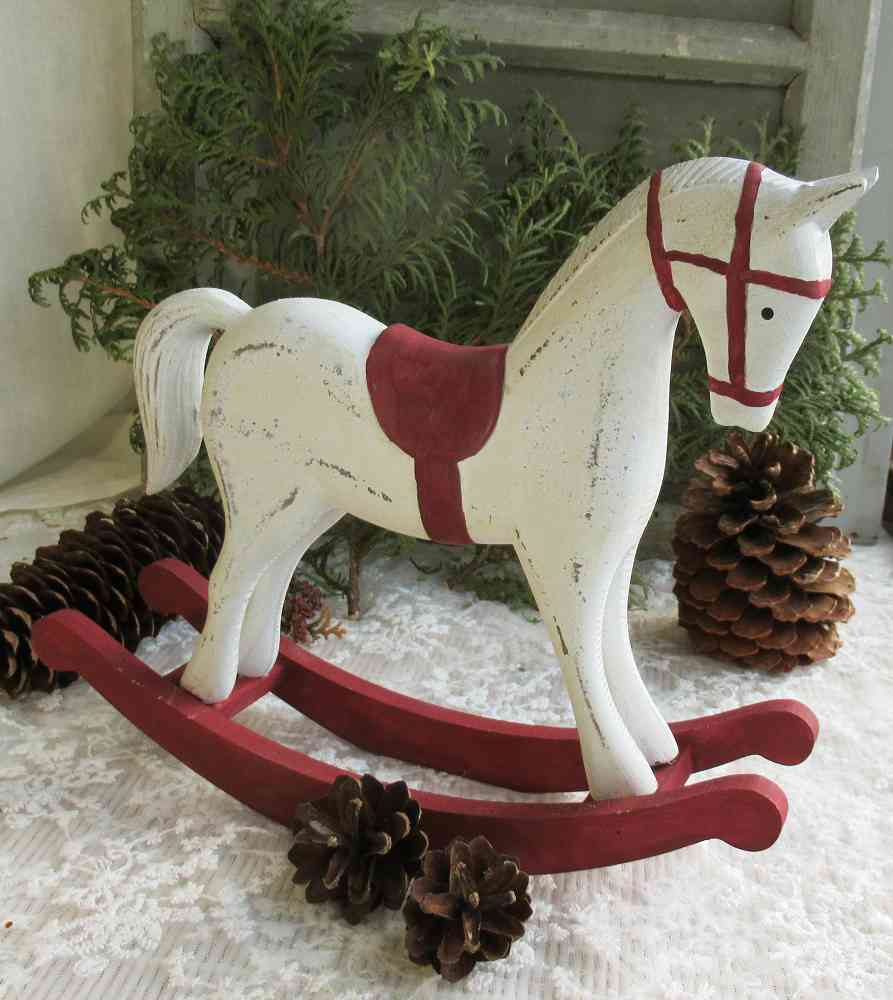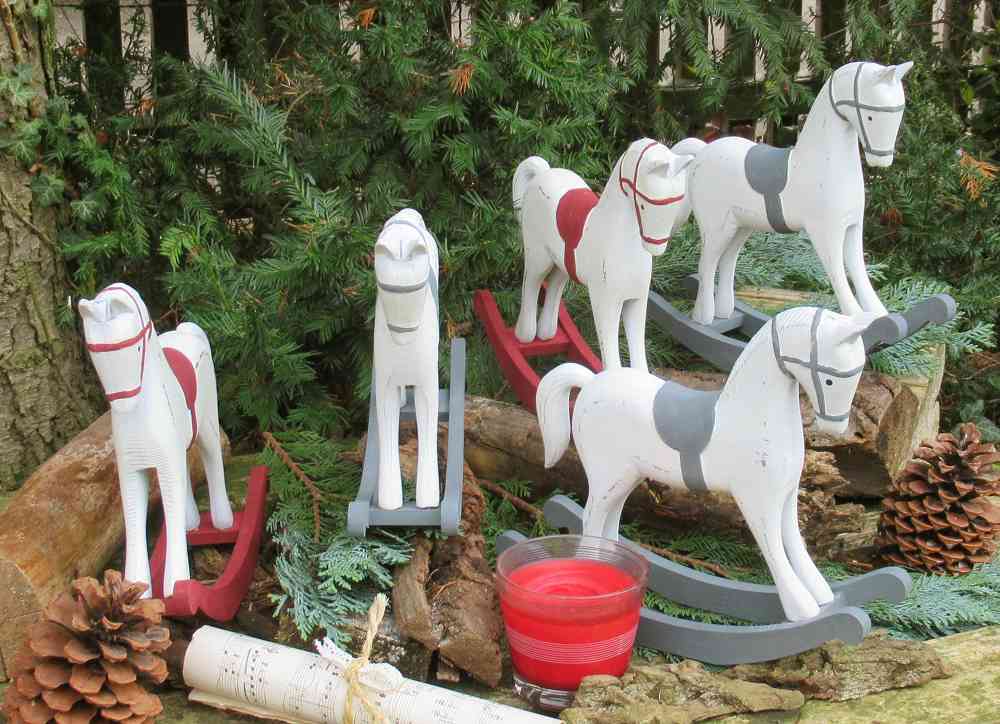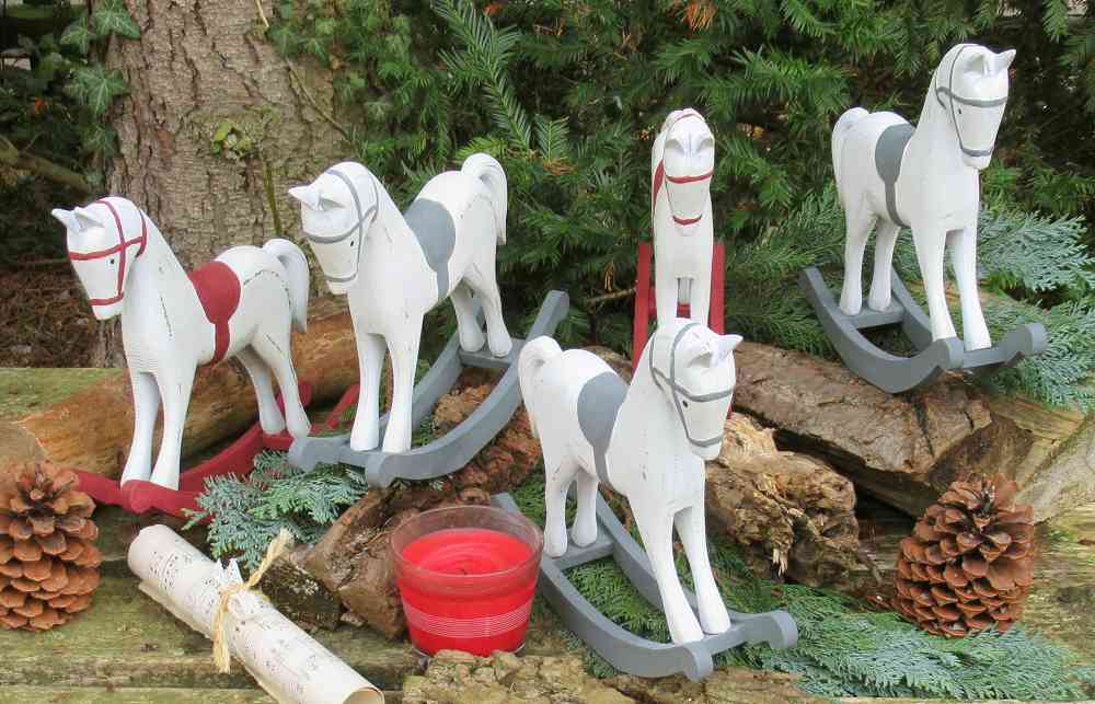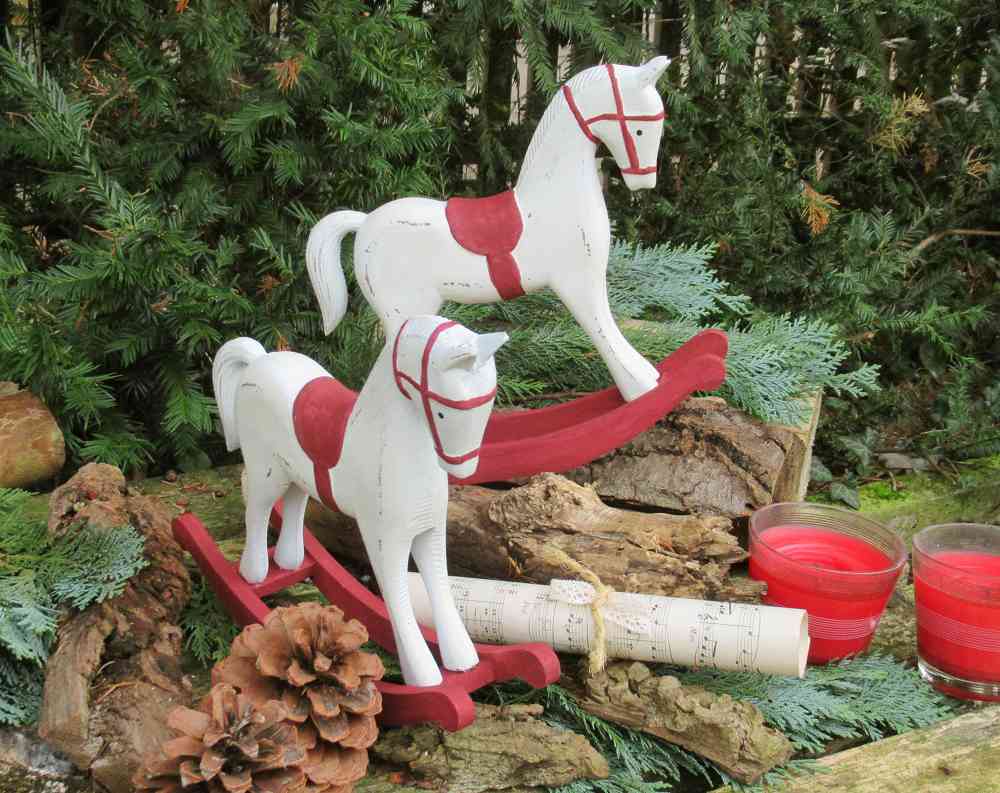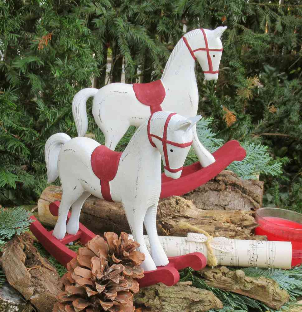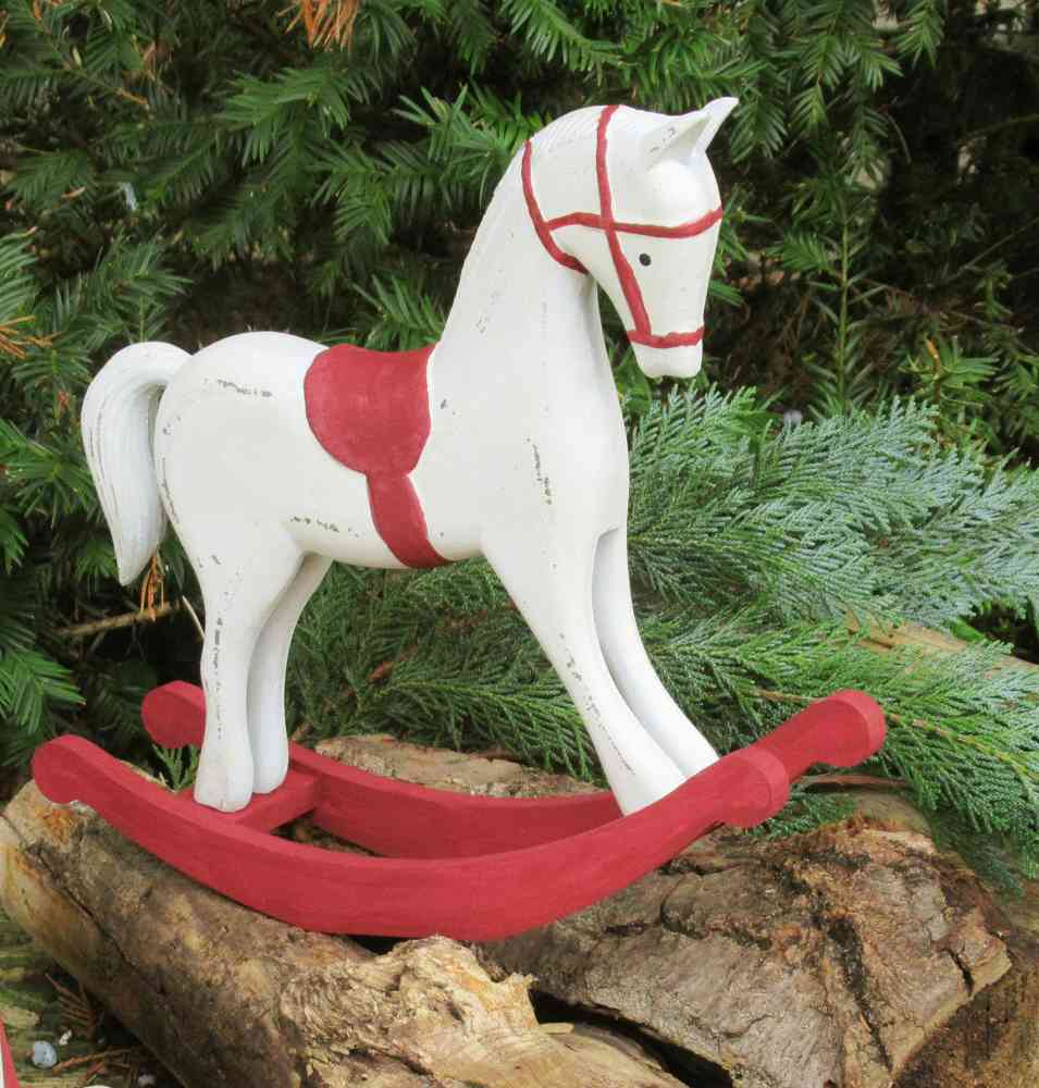 Das Pferdchen lässt nicht nur Kinderherzen höher schlagen. Ist es doch ein zauberhaftes Deko-Pferd für Ihre Weihnachtsdekoration auf Kommoden, Tischen, Fensterbänken oder Kaminsims…Und auch nach Weihnachten ist es einen hübsche Deko-Figur passend zum Shabby Chic-, Vintage- und Landhausstil. Denn das süße Schaukelpferd in shabby-weiß mit dunkelgrauen Absetzungen zaubert mit den verspielten Details nostalgisches Flair längst vergangener Tage in Ihr Zuhause.Da das handbemaltes Deko-Schaukelpferd ROT handbemalt ist, gibt es natürlich kleine Unterschiede – dafür haben Sie ein echtes UNIKAT!Es gibt die gleichen Pferdchen auch noch in weiß-grau hier im Shop. (s.letzte Fotos)
