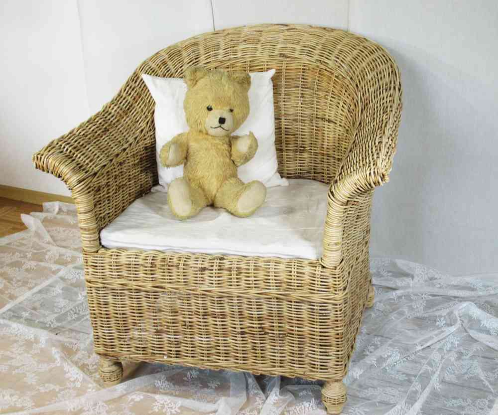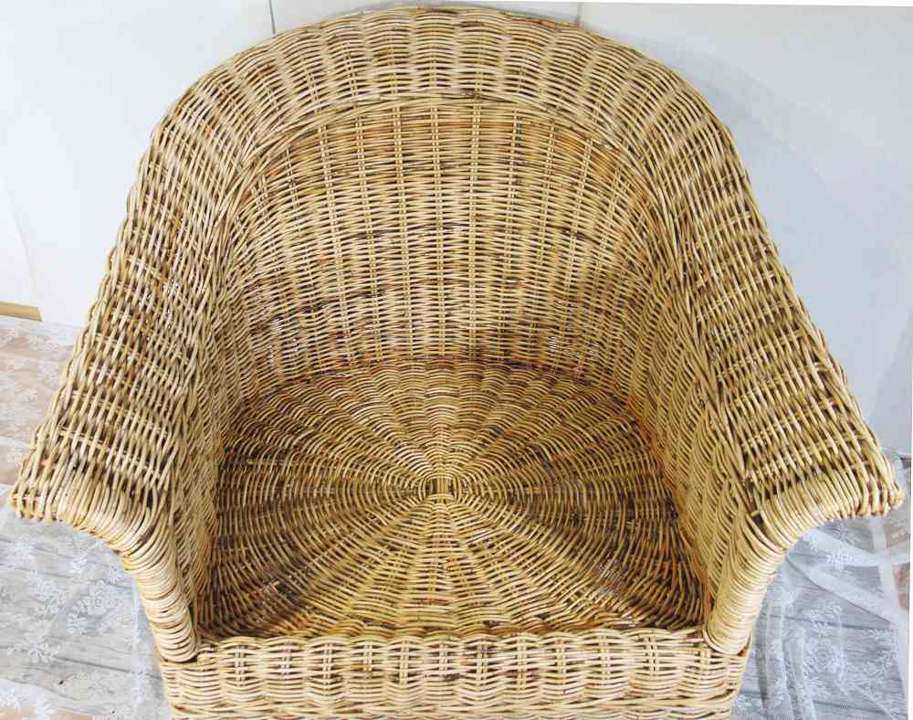 Die Flechtteile sind aus hellem Rattan. Der rel. schwere Sessel ist in sehr stabiler Bauweise gefertigt und super-bequem.