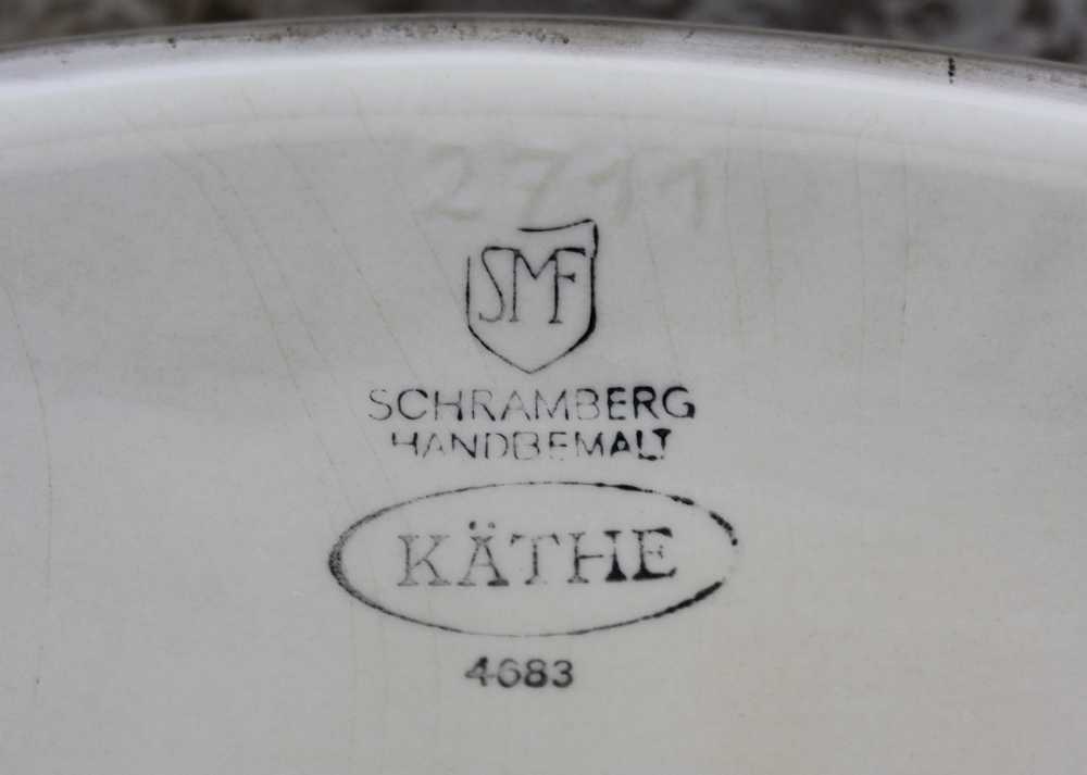 Der Boden ist gemarkt mit „SMF Schramberg handbemalt“ und einer Seriennummer.